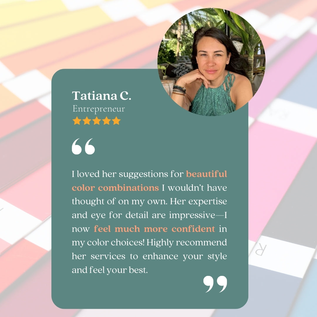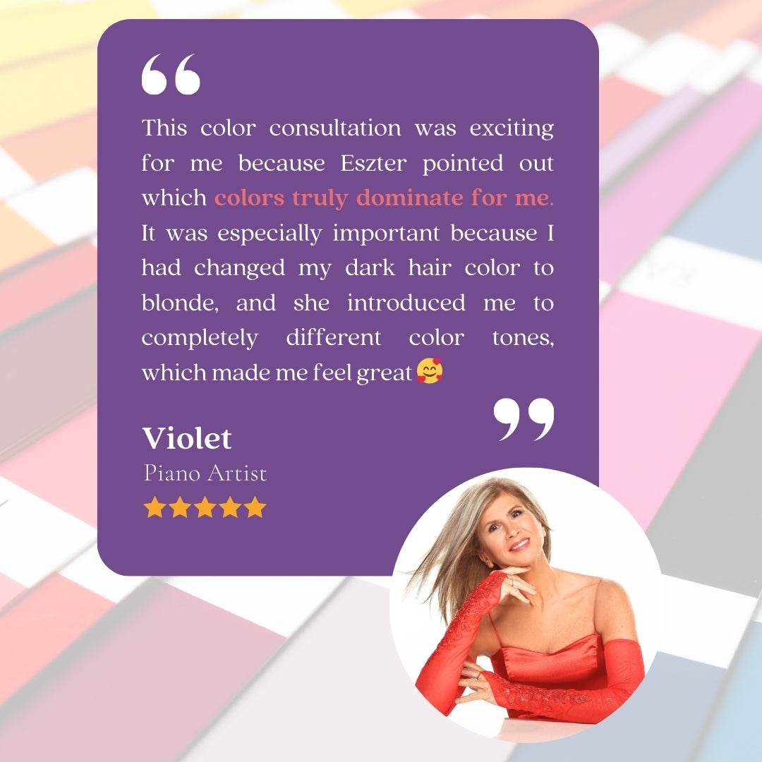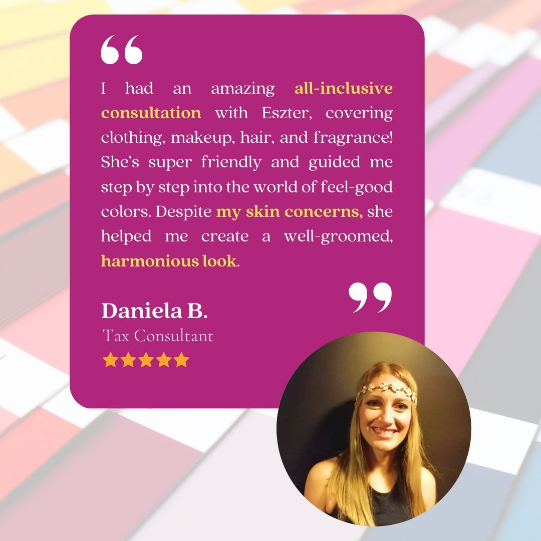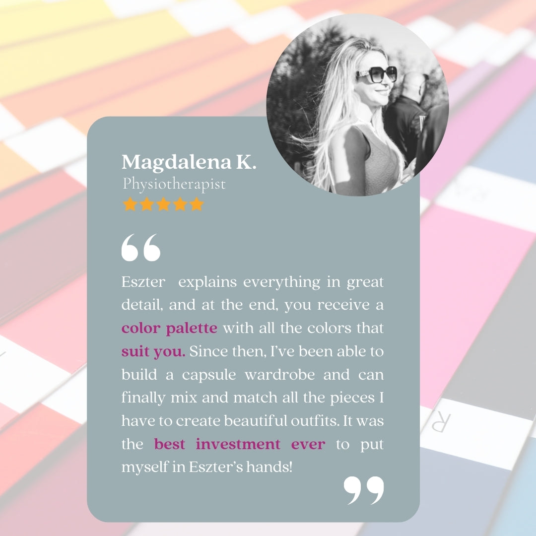 I’m Eszter, and my mission is to help women shine with confidence—by discovering their most flattering colors, refining their personal style, and creating fashion that feels as unique as they are.
